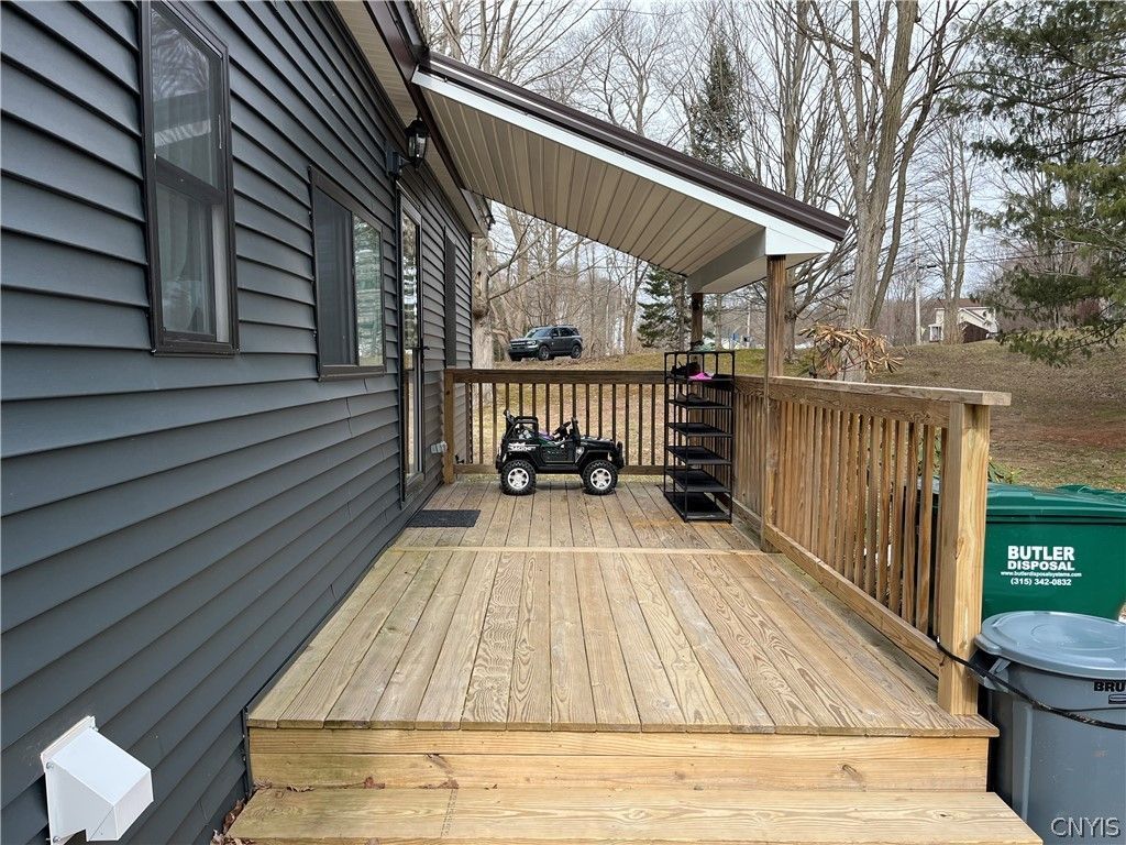 Newly remodeled single family Ranch style home on the Oswego River! This one floor living home was just completely remodeled last year with brand new flooring, lighting, ceiling fans in every room with remote functions, all new stainless steel kitchen appliances, first floor laundry room, 2 full brand-new bathrooms and new decking. All bedrooms have spacious closets, primary walk-in closet. Enjoy the covered front porch or the back deck that stretches the length of the home with entries from both the living room and primary bedroom suite to enjoy that beautiful view of the river. Large back yard leading down an open walking path right to the Oswego River where you can sit and enjoy the view, drop in a kayak or just walk right into the water. New central air unit, hot water heater and furnace, partial basement great for storage. Spacious driveway can easily fit multiple vehicles. Rental application must be filled out prior to showing requests. https://apply.link/rzh9ias